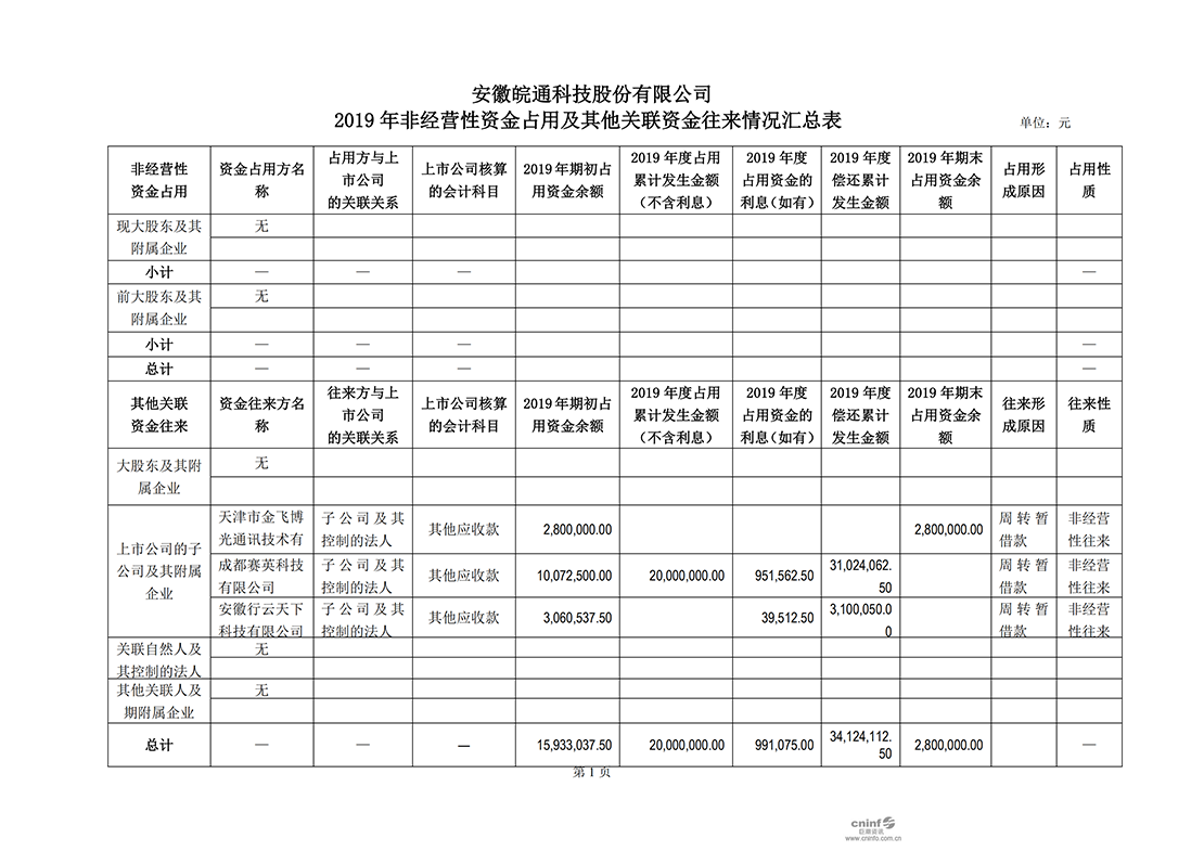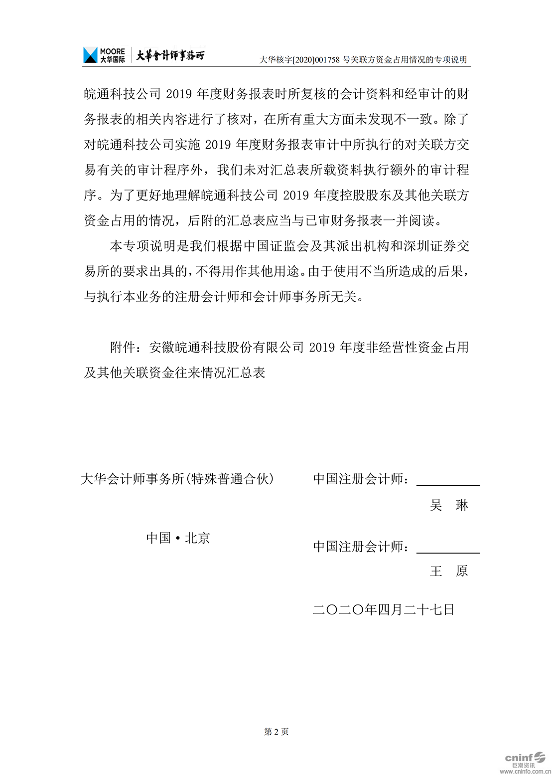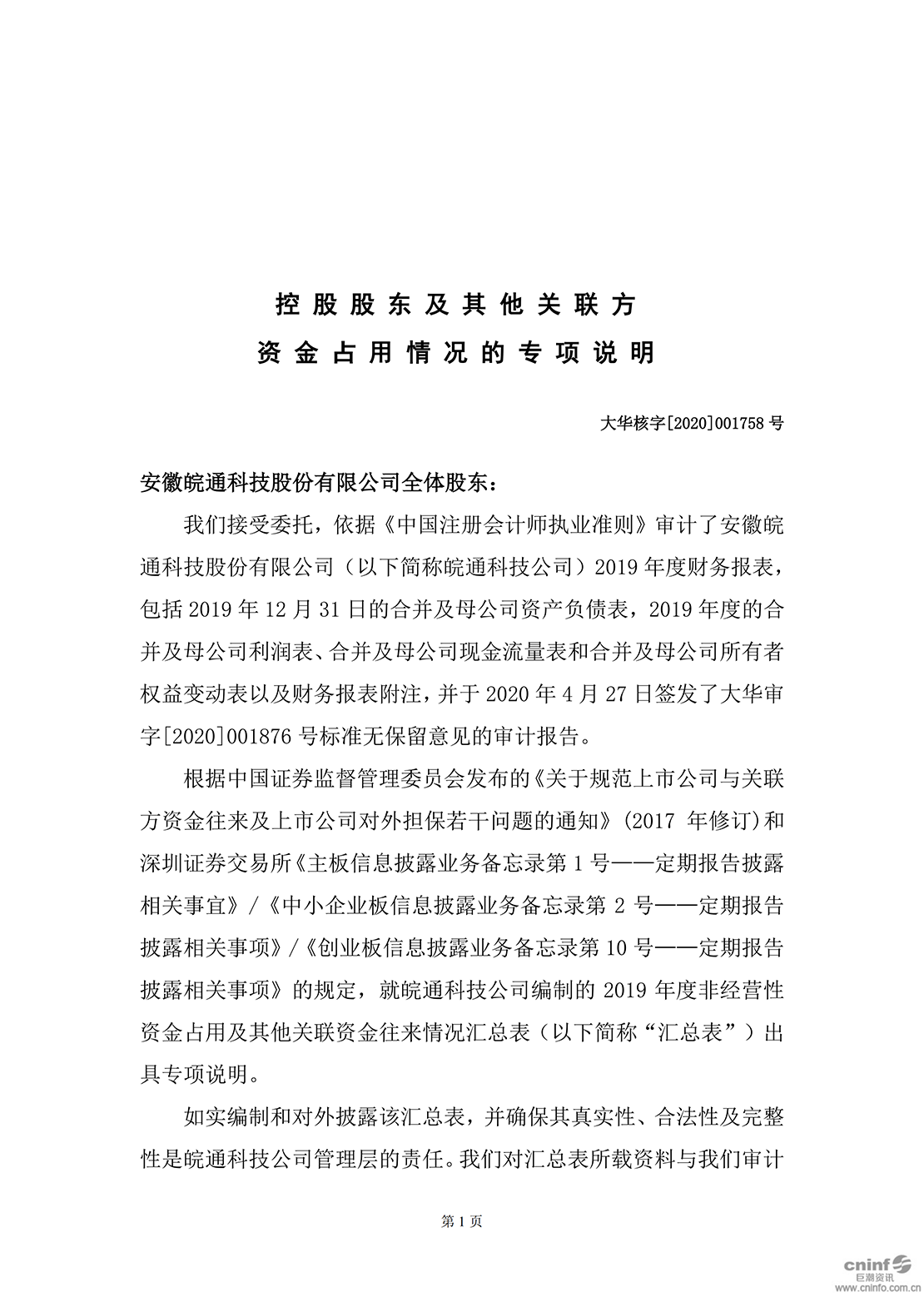 皖通科技:控股股東及其他關(guān)聯(lián)方資金占用情況的專項說明(1)