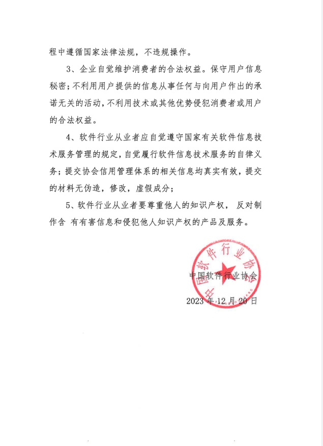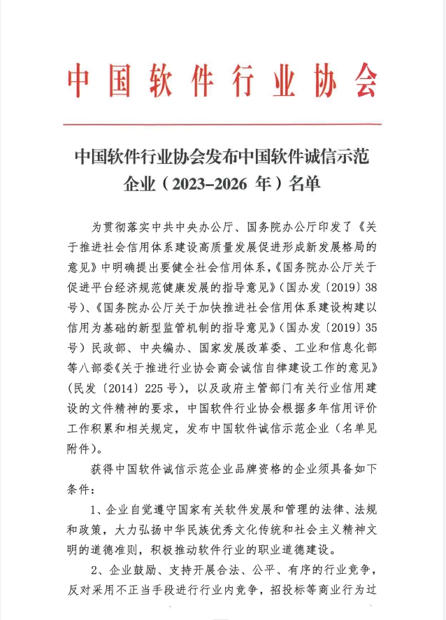 根據(jù)評(píng)選要求,企業(yè)須連續(xù)三年參加中國軟件行業(yè)協(xié)會(huì)開展的軟件企業(yè)信用評(píng)價(jià)工作并獲得AAA級(jí)別,方可獲得中國軟件誠信示范企業(yè)評(píng)選資格。公司一直以來嚴(yán)格遵守《中國軟件行業(yè)自律公約》依法經(jīng)營、誠實(shí)守信,自2014年起,連續(xù)多次參加中國軟件行業(yè)協(xié)會(huì)開展的軟件企業(yè)信用評(píng)價(jià)工作,并獲得AAA信用評(píng)級(jí),完全符合中國軟件誠信示范企業(yè)評(píng)選要求。